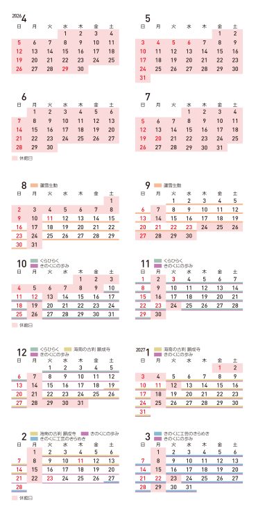 年間開館スケジュール