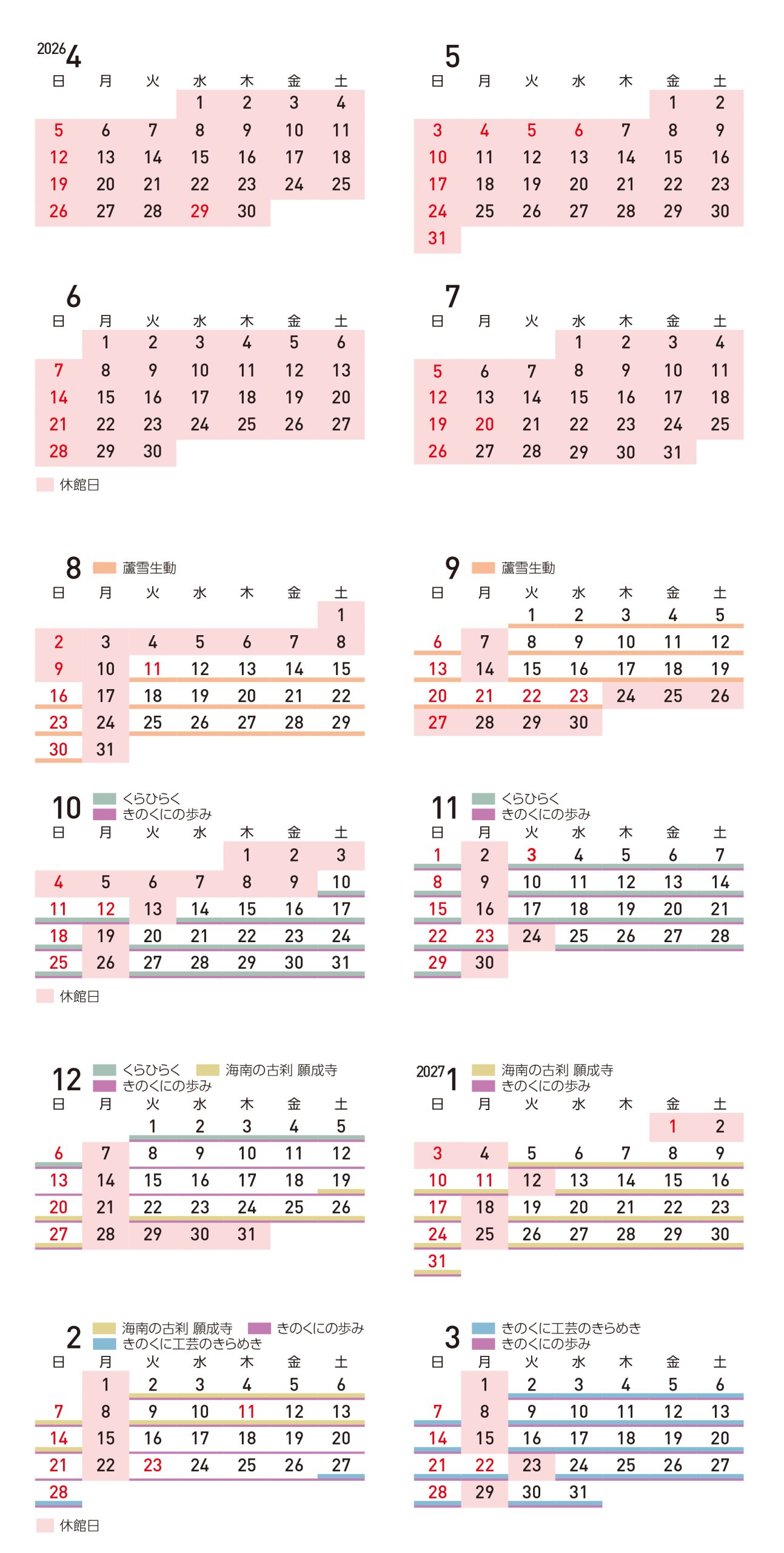 < 年間開館スケジュール