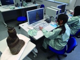 集落の過疎化や高齢化によって管理が困難になる※仏像や神像の複製を地域に安置し、実物は博物館で保管。レプリカのかたちをつくるのは、3Dプリンターの技術を学ぶ県立和歌山工業高等学校産業デザイン科の生徒たちで、着色には和歌山の大学生や地域のこどもたちも挑戦しています。取り組みは2012年から、23カ所44体の仏像や神像にこどもたちが向き合い、地域の歴史を未来につないできました。