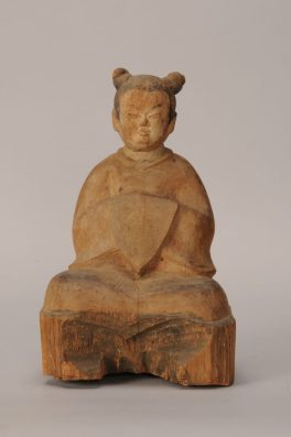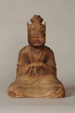 これも日高川町の安楽寺に伝わった神像で、岩の上に座った姿に表されています。この像の底にも、僧形坐像と同じ正平11年3月7日の日付が書かれており、1356年ごろに作られたことがわかります。