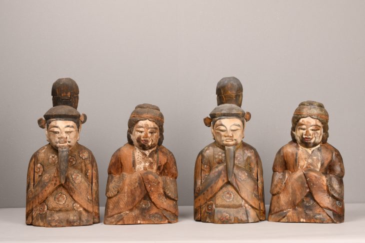 県立博物館では、県立和歌山工業高等学校、和歌山大学教育学部等の教育機関の協力を得て、3Dプリンタを用いた文化財の精巧な複製を作り、文化財の防犯や防災の対策への活用を図っています。高齢化や人口減少などの要因により、管理や保全が困難になっている地域の寺社にある文化財を博物館で保管し、かつ、信仰されてきた環境を維持するための取り組みで、平成24年度から令和4年度までに、県内21か所の寺社に38体の「お身代わり仏像/神像」を安置しています(※今回奉納分を含むと22か所・40体)。