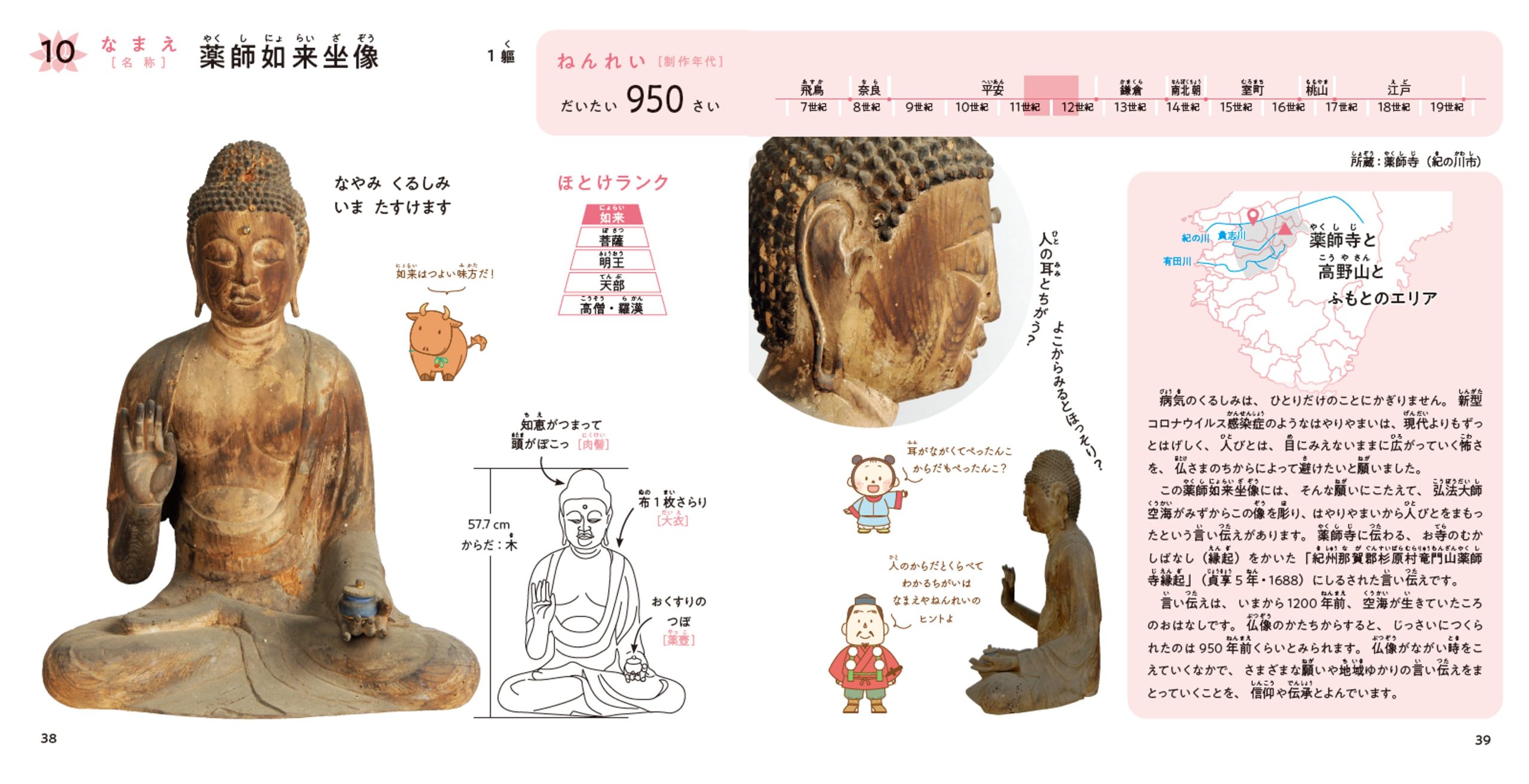 けれども、わからないことはまだまだたくさんあります!この図録には、わたしたちよりもずっとずっと長く、和歌山をみつめてきた仏像たちにであい、いろいろな発見をしていくためのヒントを、たっぷりつめこみました。